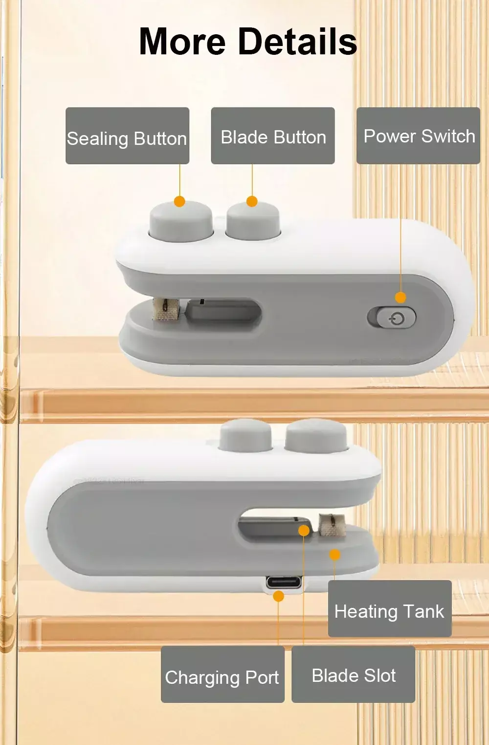 Com a Mini Seladora de Embalagens Recarregável, você mantém seus alimentos frescos, crocantes e bem armazenados por muito mais tempo — tudo isso com um simples deslizar. Compacta, prática e moderna, ela é a aliada perfeita para sua cozinha, viagens e até acampamentos!